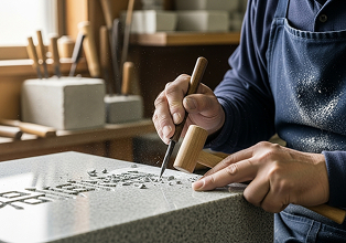 中間マージンなし、想いを込めた“職人直営体制”地域に根ざし、職人が直接向き合う安心の体制。長く寄り添うお墓づくりを、心を込めて。